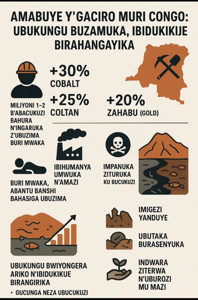 Nk’uko imibare yerekana, mu myaka itanu ishize, ubucukuzi bwa cobalt bwazamutse ku gipimo cya 30%, coltan ku gipimo cya 25%, naho ubucukuzi bwa zahabu bwiyongereyeho 20%. Nubwo ibi byazamuye ubukungu bw’igihugu, umubare w’abacukuzi bahasiga ubuzima cyangwa bakangirika ku buryo bw’igihe kirekire nawo uriyongera.