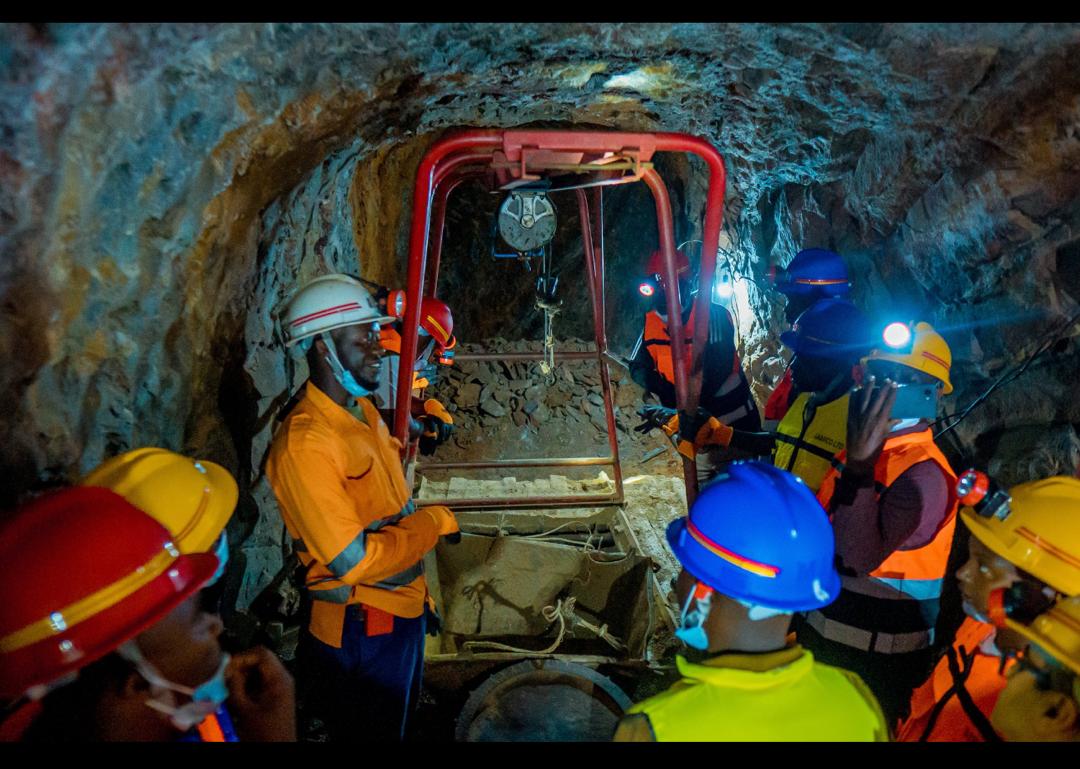 More than 200 meters beneath the surface at Bashyamba mine in the City of Kigali, machines crush rocks as fine dust rises and mixes with the limited air inhaled by workers.(Air is not limited because they is full ventilation through pipes) Every morning, they put on helmets, protective masks, and specialized boots before descending into the underground tunnels.
