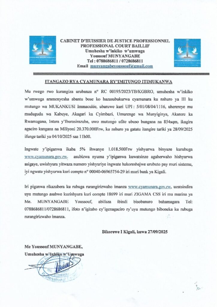 ITANGAZO RYA CYAMUNARA RY’UMUTUNGO UTIMUKANWA