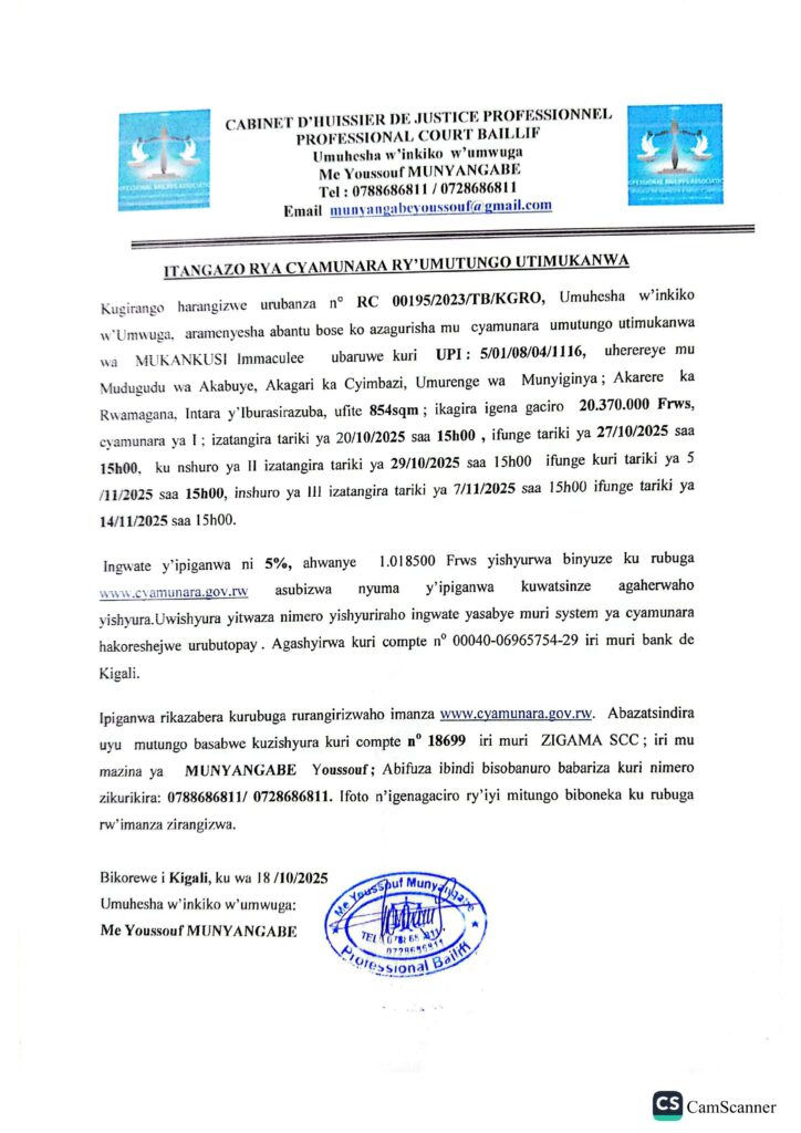 • ITANGAZO RYA CYAMUNARA RY’UMUTUNGO UTIMUKANWA
