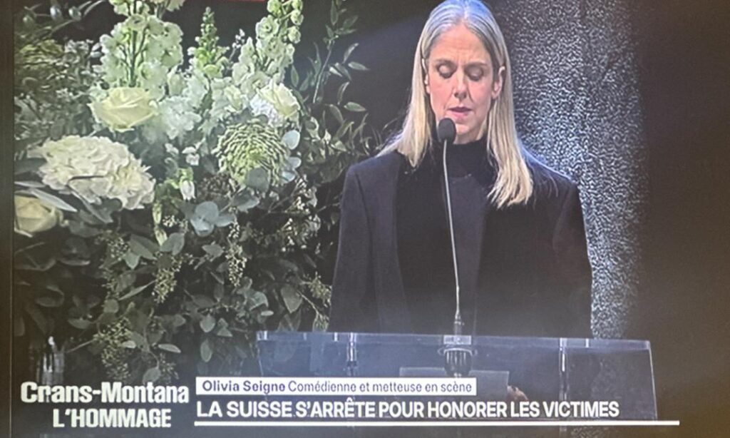 Mu ijambo ryafunguraga uyu muhango, Olivia Seigno, umunyarwenya akaba n’umuyobozi w’ikinamico (Comédienne et metteuse en scène), yashimangiye ko Ubusuwisi “bwahagaze” kugira ngo bwubahe ubuzima bwazimye imburagihe. Yavuze ko abana n’urubyiruko batakaye atari imibare, ahubwo ari inzozi, ibyiringiro n’ejo hazaza by’igihugu byazimye. Yagize ati: “Twahisemo guceceka kugira ngo twumve uburemere bw’igihombo twagize, ariko tunumve n’inshingano dufite zo kurinda ubuzima bw’abasigaye.”